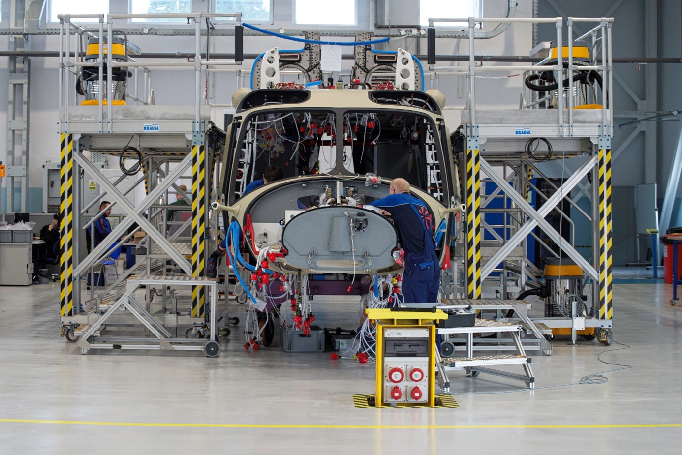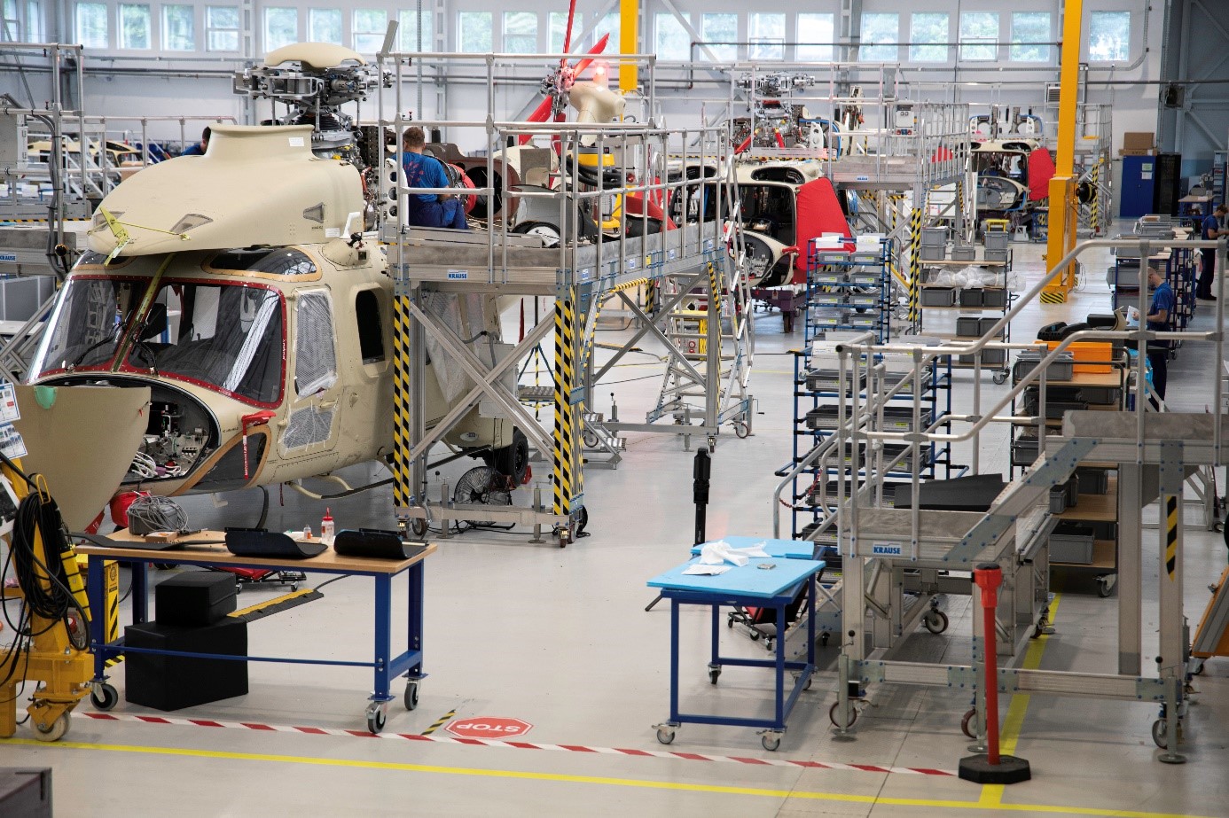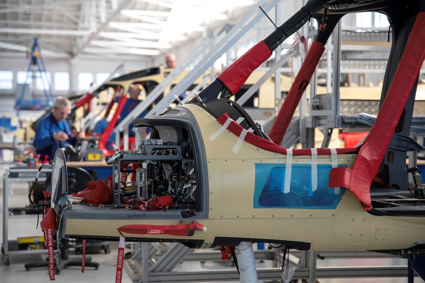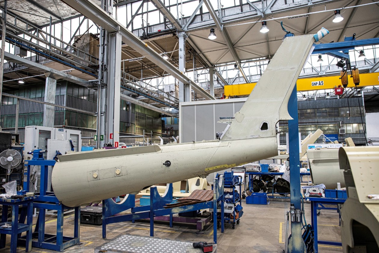 Foto: etapy montażu komponentów na śmigłowcu AW109 w Leonardo PZL-Świdnik